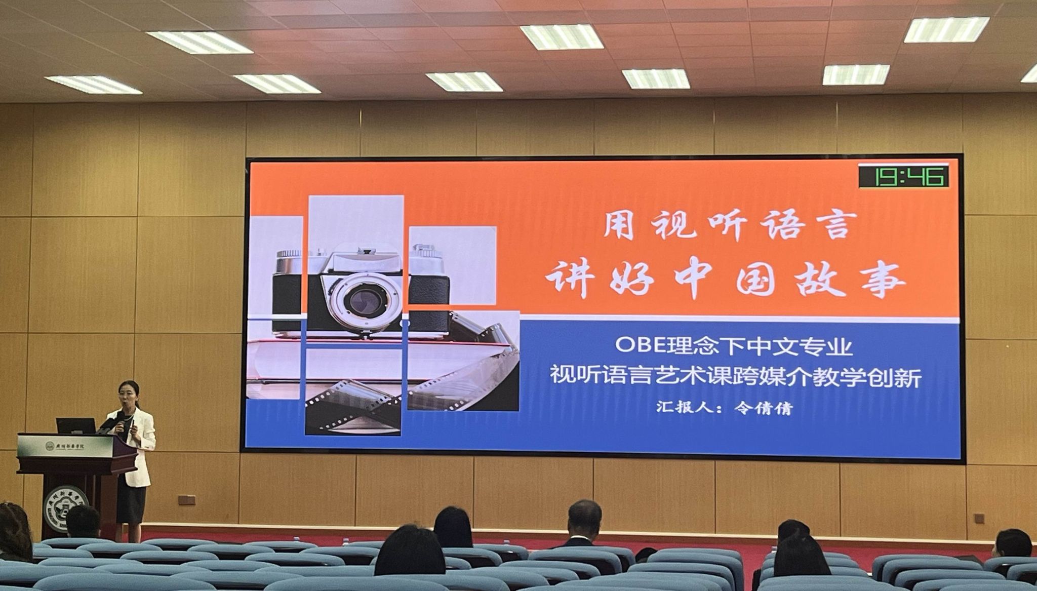 令倩倩老师作《OBE理念下中文专业视听语言艺术课跨媒介教学创新》汇报